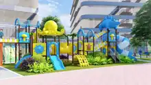 Hotel Outdoor Area Customize Children Park Plastic Slides with Climbing Net Structure